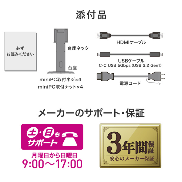 さらに、USBハブ(USB-A×2)を搭載しているため、マウスやキーボード、Webカメラの接続にも便利です。