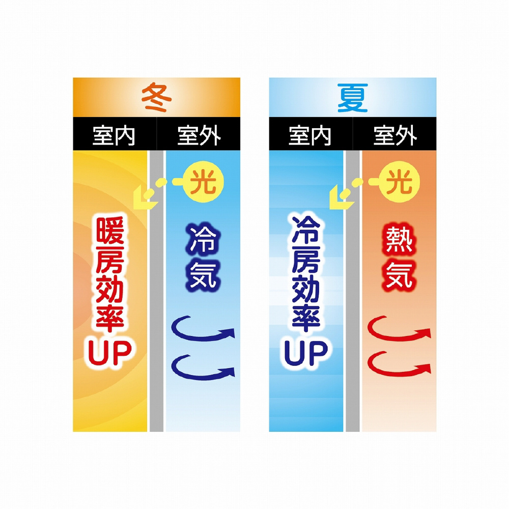 ●窓から伝わる冷気・熱気や紫外線をカットします。