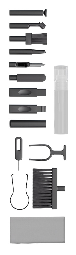 ブラシやクリーナー、SIMピン、キーキャッププラー、スティッククリーナーなど、キーボードやイヤホン、端子の細部まで対応する合計15種を1セットに凝縮。