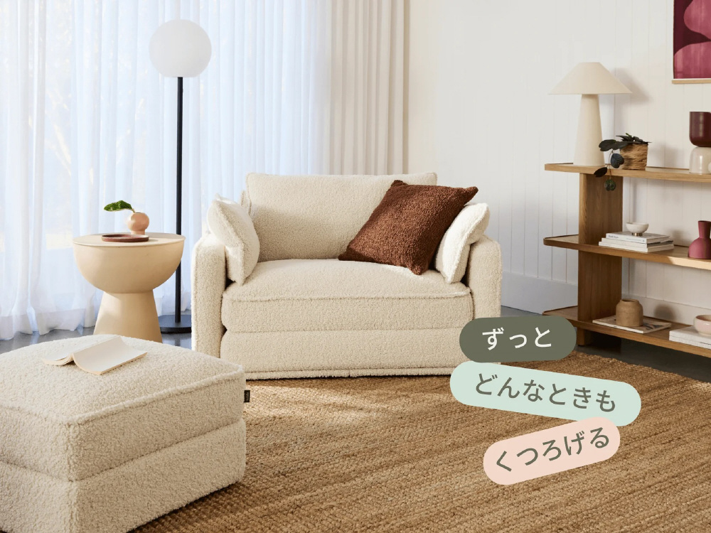 ひとりでも、ふたりでも心地いいCUSHYは、寝転んでも座っても、1日中快適。トッパーにはクラウドセル(R)を採用し、マットレスのような寝心地を実現しました。