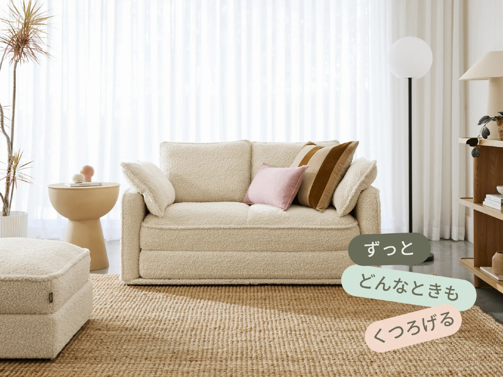 ひとりでも、ふたりでも心地いいCUSHYは、寝転んでも座っても、1日中快適。トッパーにはクラウドセル(R)を採用し、マットレスのような寝心地を実現しました。