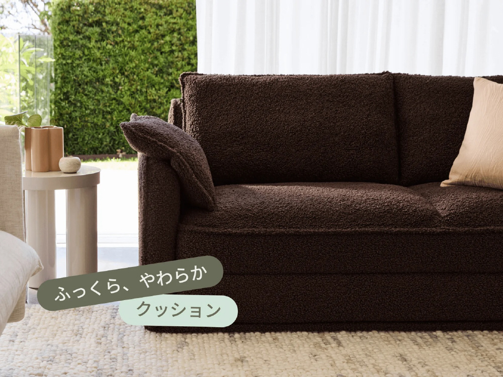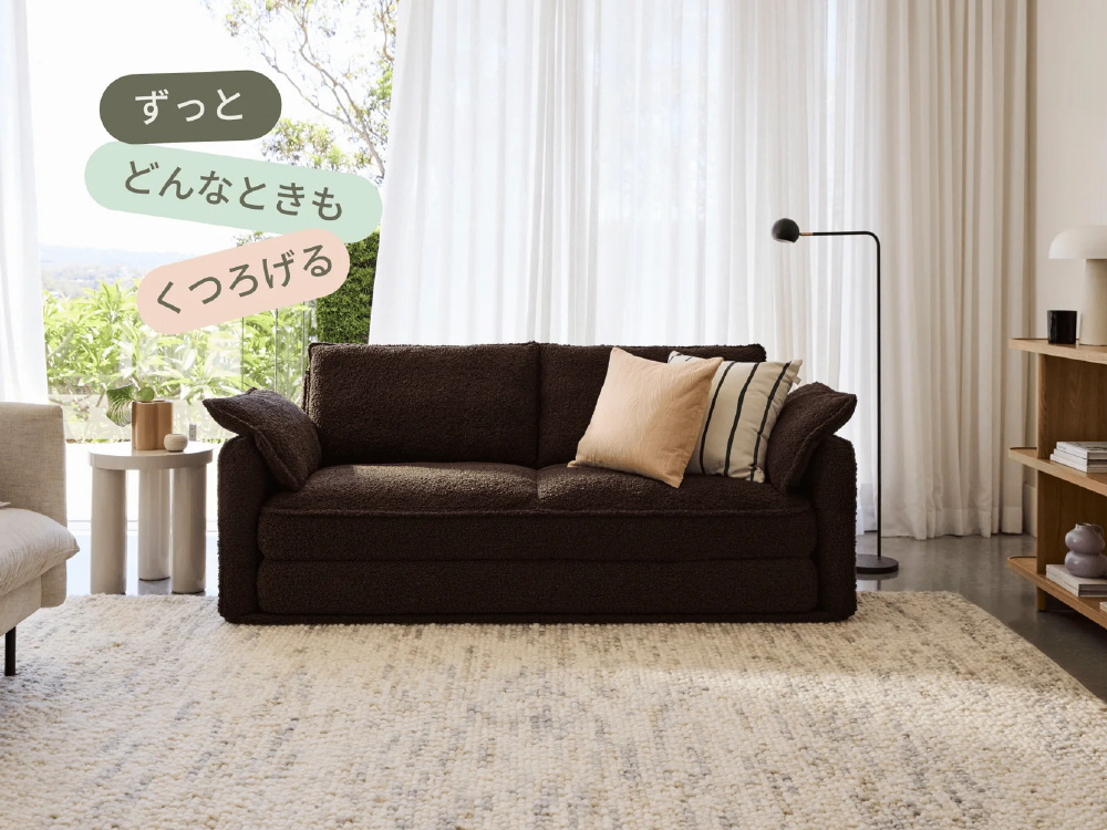 ひとりでも、ふたりでも心地いいCUSHYは、寝転んでも座っても、1日中快適。トッパーにはクラウドセル(R)を採用し、マットレスのような寝心地を実現しました。