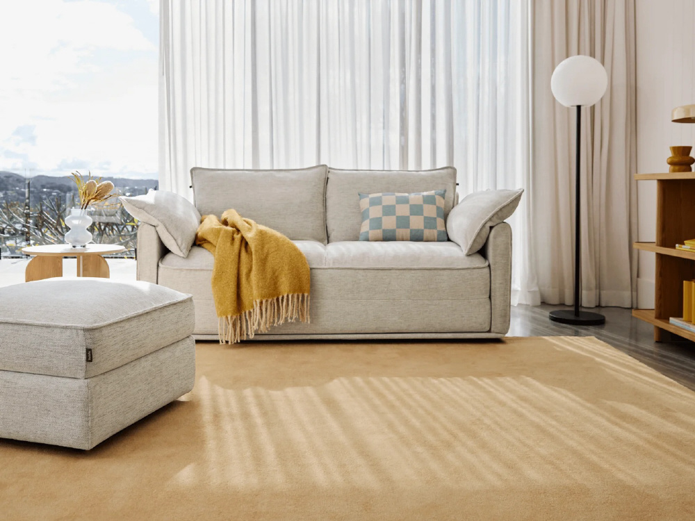 ひとりでも、ふたりでも心地いいCUSHYは、寝転んでも座っても、1日中快適。トッパーにはクラウドセル(R)を採用し、マットレスのような寝心地を実現しました。