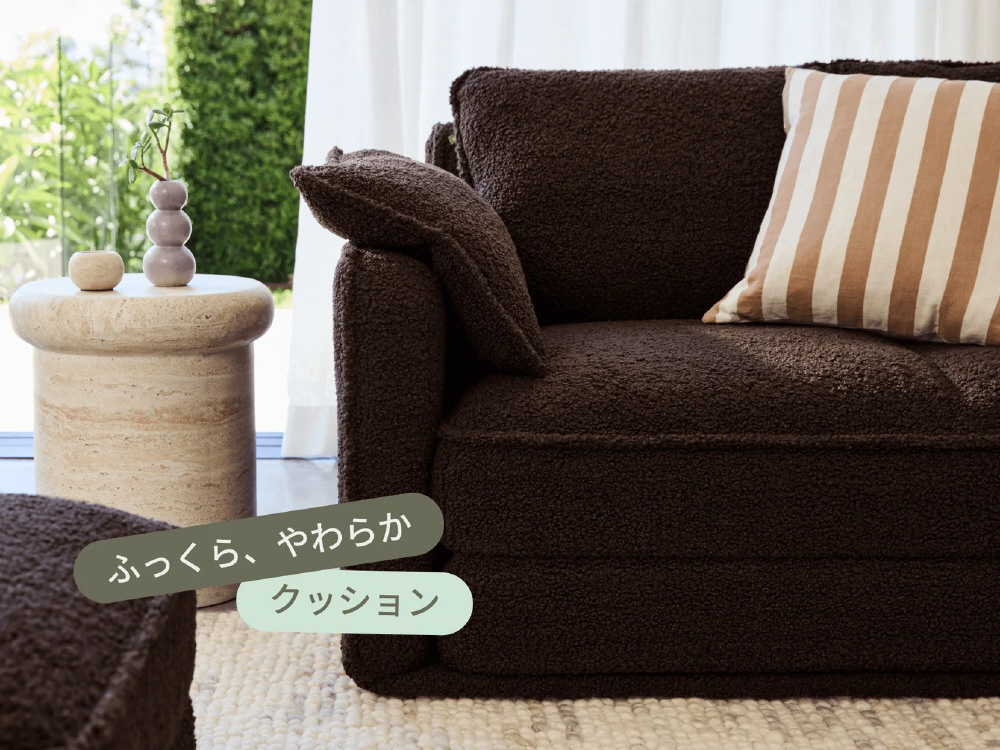ひとりでも、ふたりでも心地いいCUSHYは、寝転んでも座っても、1日中快適。トッパーにはクラウドセル(R)を採用し、マットレスのような寝心地を実現しました。