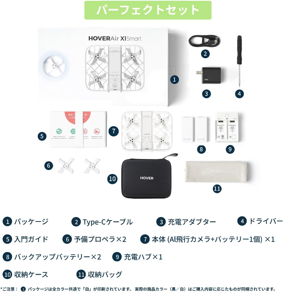 付属品 HOVERAir X1 Smart本体(バッテリー含む)×1、追加バッテリー×2、充電ハブ×1、オールインワン収納ケース×1