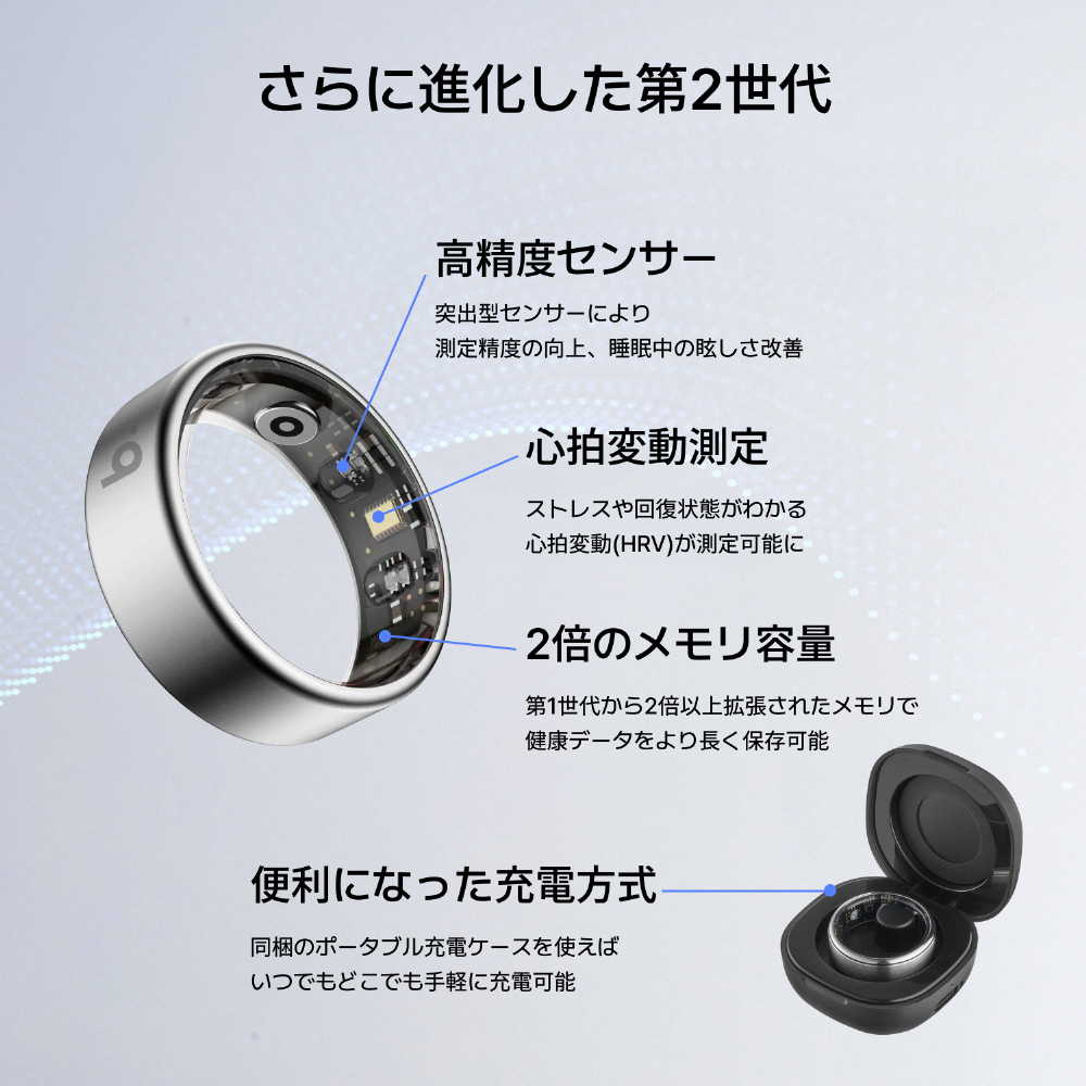 B095TNSV2 b.ring(ブリング) G2 第二世代 チタニウム AIスマートリング 睡眠・健康管理 9号(内周60mm) シルバー