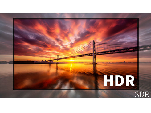 ■HDR(ハイダイナミックレンジ)に対応。明るい部分も暗い部分もくっきり表現しリアルに迫った深みのある映像を演出します。HDR対応のブルーレイディスクやビデオ・オン・デマンド、ゲームなどの表示が可能です。HDCP2.2対応で4K配信動画もお楽しみ頂けます。
