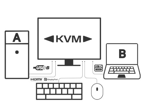 ■KVM機能に対応。モニターに接続したキーボード、マウスをデスクトップPCやUSB-C接続のノートPCで入力を切り替えた際にもそのまま使用可能です。