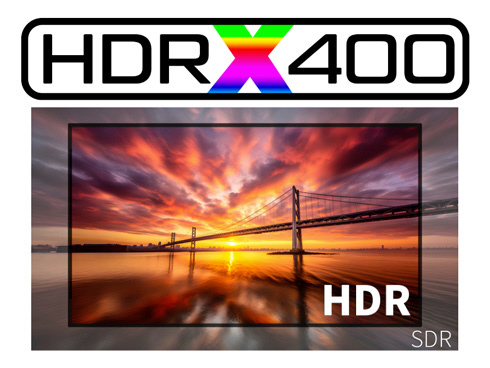 ■最大輝度500cd/m2、sRGB:100%、DCI-P3:96%の広色域に対応した液晶パネルは、HDR400相当の性能を持ち、コンテンツを色鮮やかに映し出します。