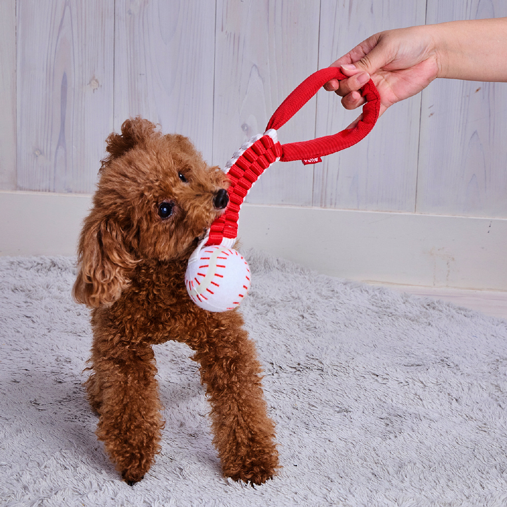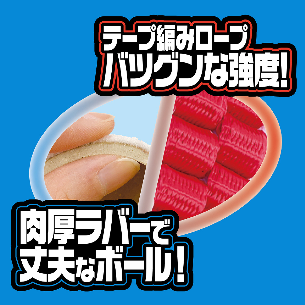 テープ編みロープでバツグンな強度。肉厚ラバーで丈夫なボール。