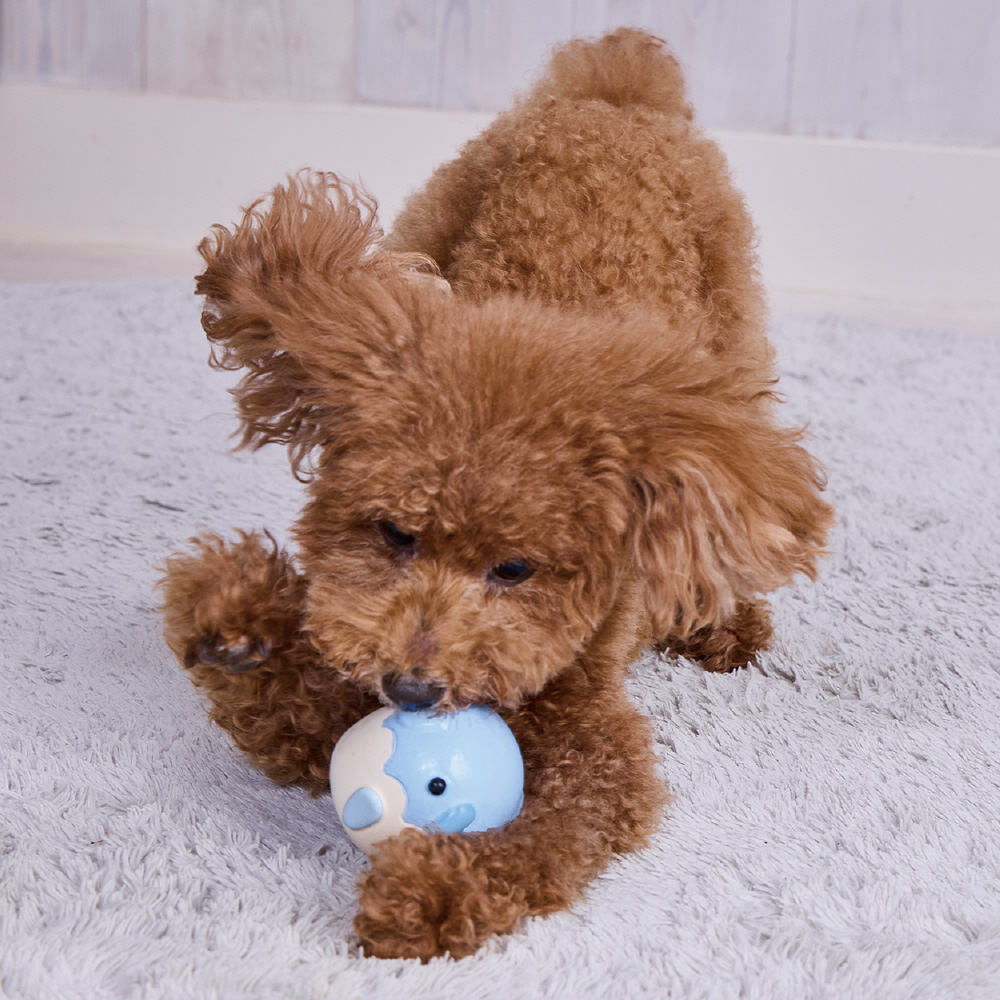 ワンちゃんが興味を示すピューピューなる笛付。やわらかくて噛みやすいラテックス製。