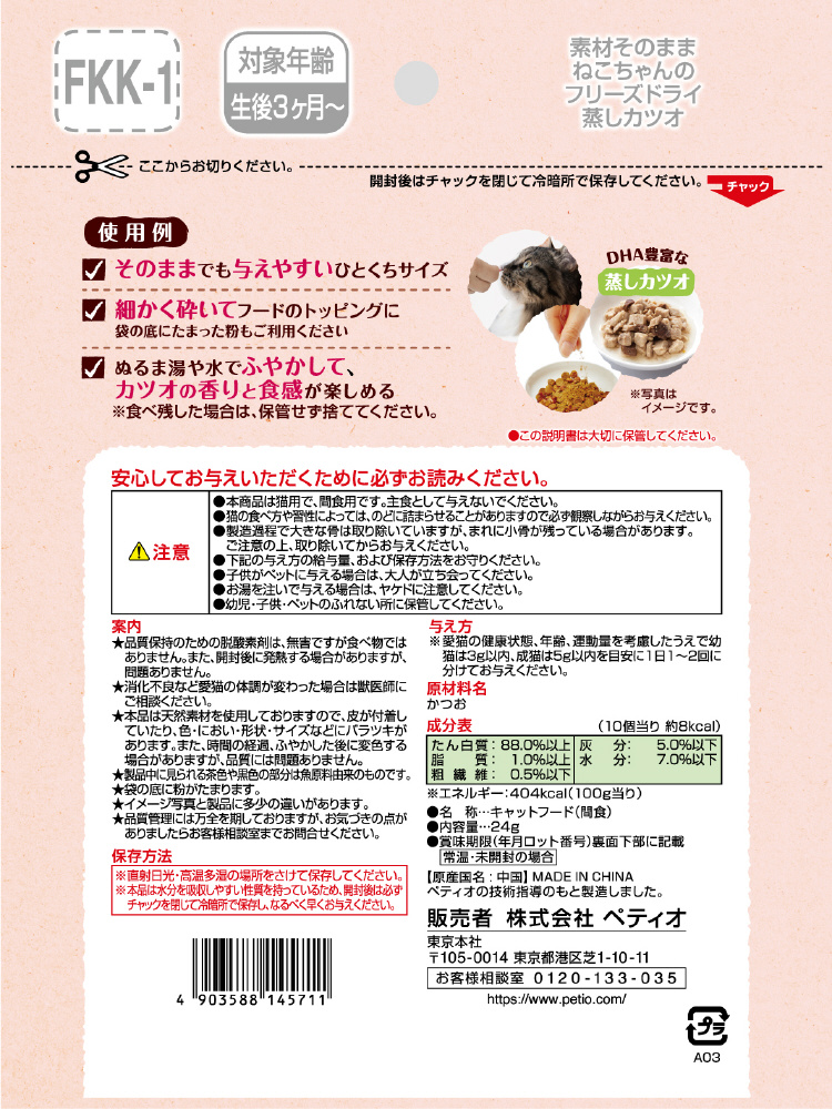 素材そのまま ねこちゃんの 完全無添加 フリーズドライ 蒸しカツオ 24g