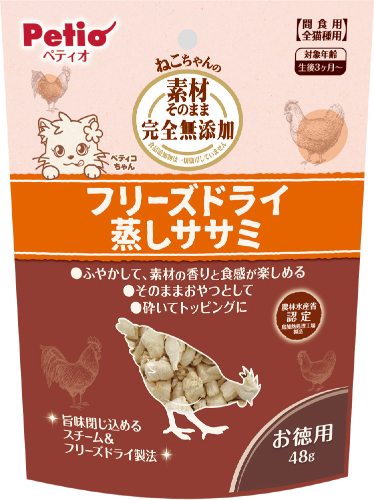素材そのまま ねこちゃんの 完全無添加 フリーズドライ 蒸しササミ 48g