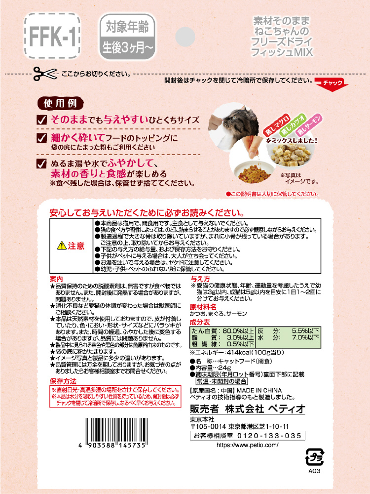 素材そのまま ねこちゃんの 完全無添加 フリーズドライ フィッシュMIX 24g