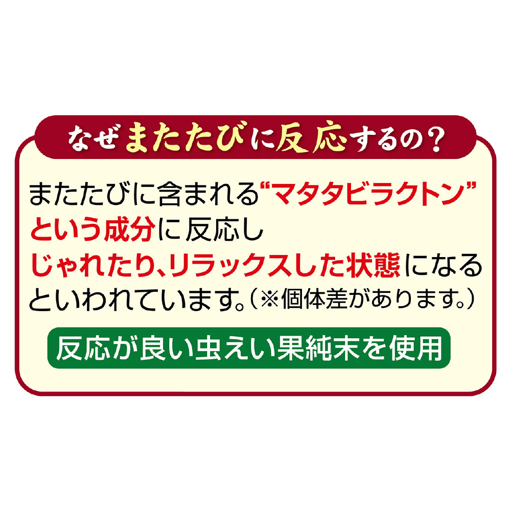 ・またたびの中でも反応が良い虫えい果の純末を使用。
