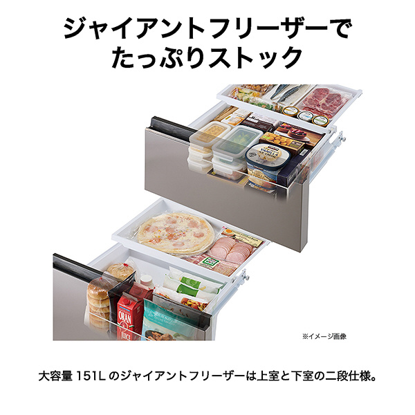 大容量151Lのジャイアントフリーザーは上室と下室の二段仕様。
