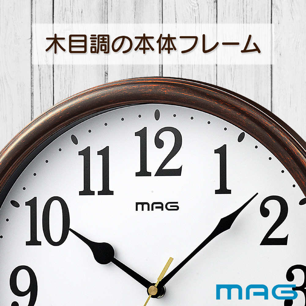 シンプルな木目調の電波時計 桔梗(キキョウ) ブラウン W-781 BR-Z