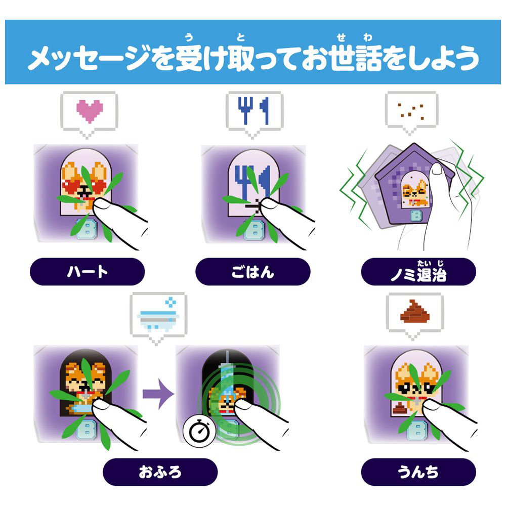 ■わんこは何か必要な時にメッセージを送ってくれるよ。ごはん/おふろ/ノミ退治/うんち などメッセージに合わせてお世話をしよう。
