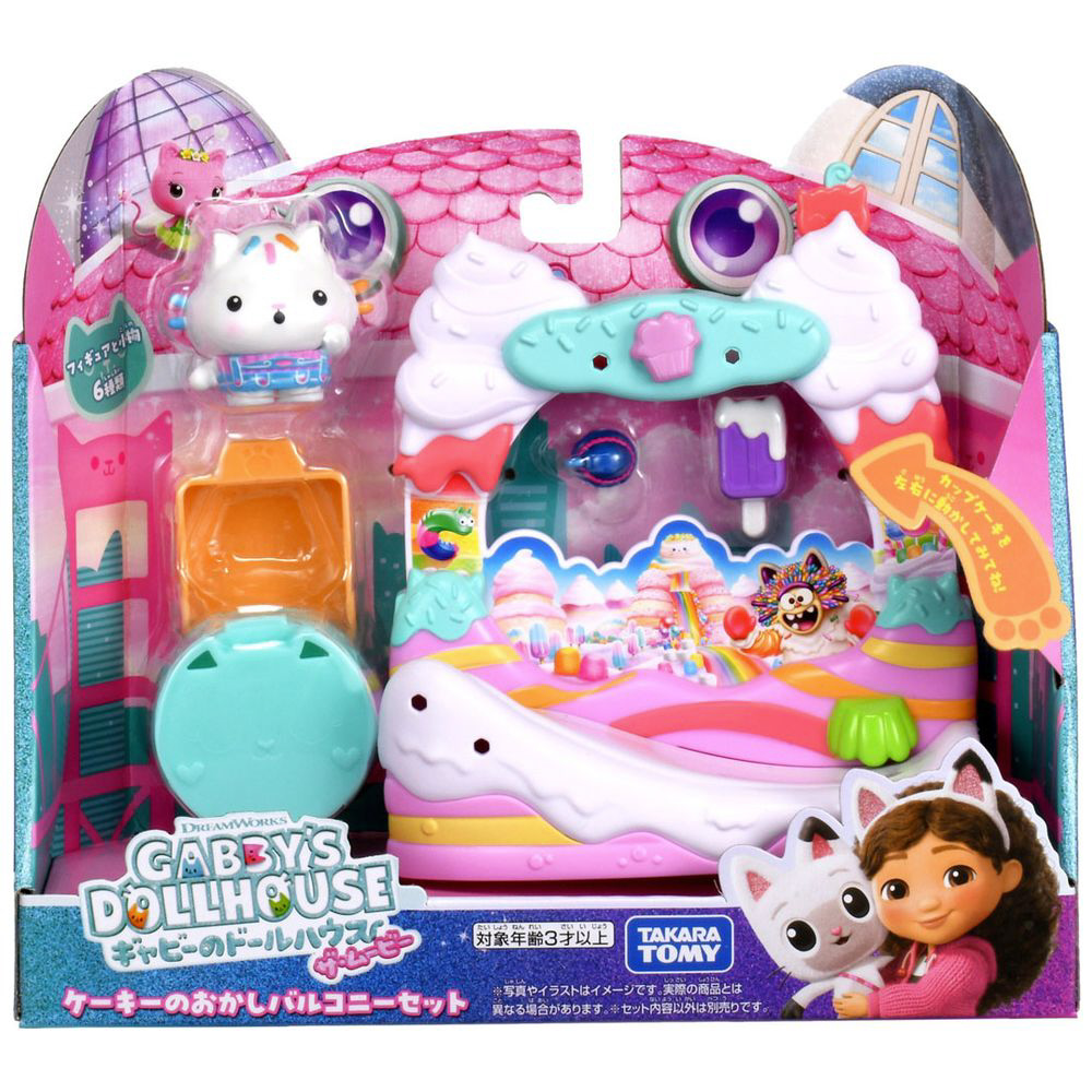 『ギャビーのドールハウス ザ・ムービー』の劇中シーンを再現したおかしのバルコニーとケーキーのフィギュア、小物が付いたプレイセットです。