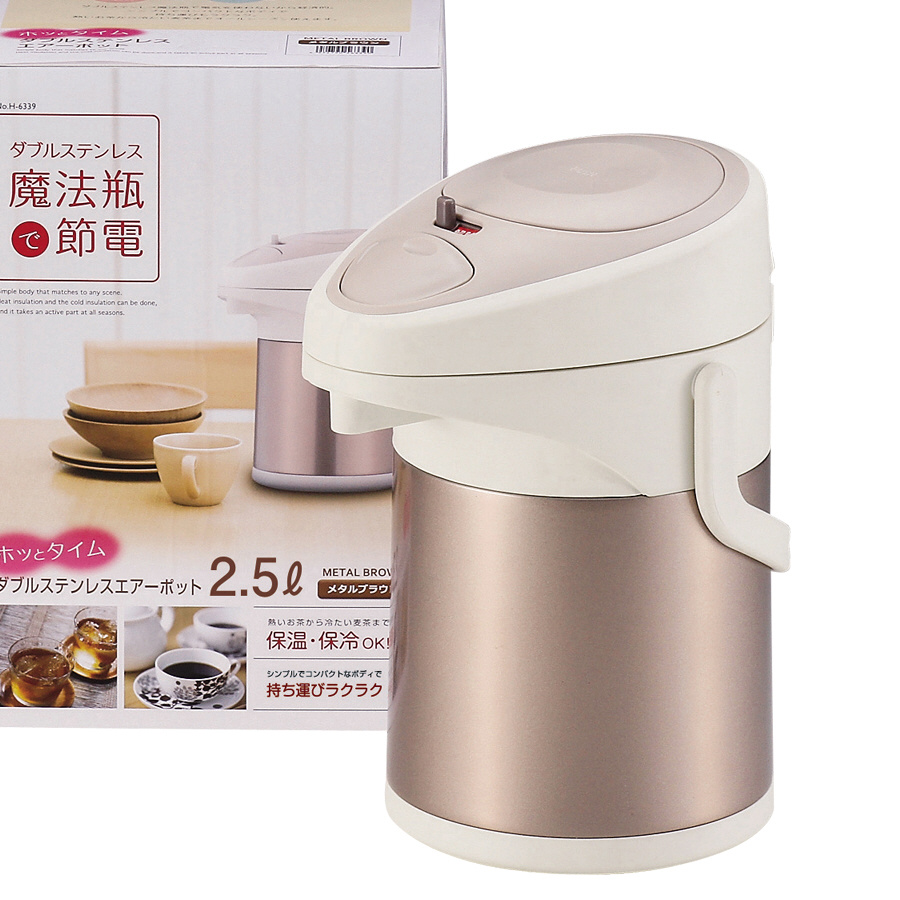 ホッとタイム ダブルステンレスエアーポット2.5L(メタルブラウン) H-6339