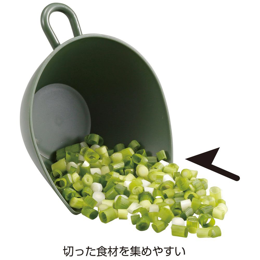 縁の一部は、切った食材を集めやすいフラットな形状。角は注ぎ口としても便利。