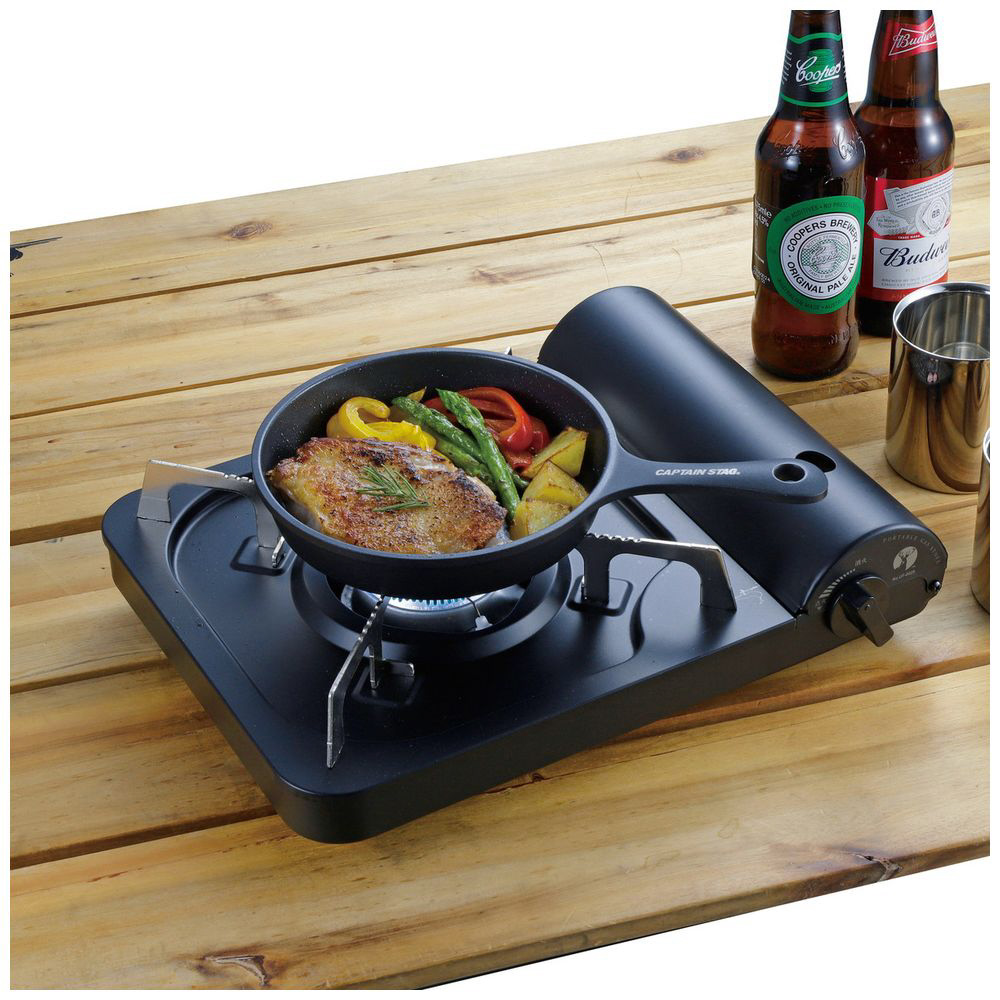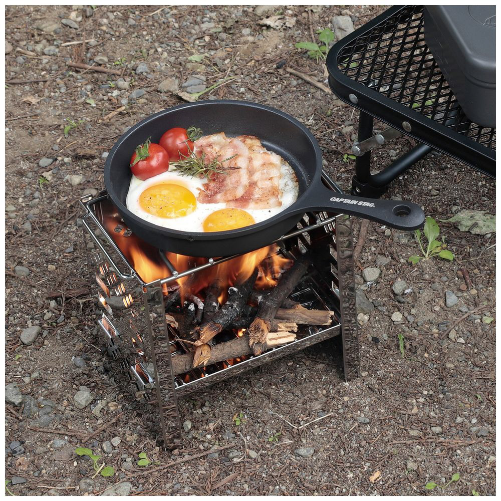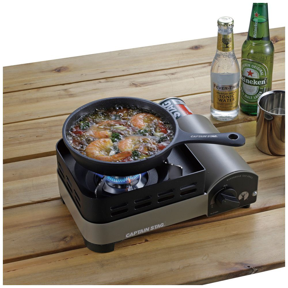 焚き火台、ジュニアタイプと通常カセットコンロでも使えます。