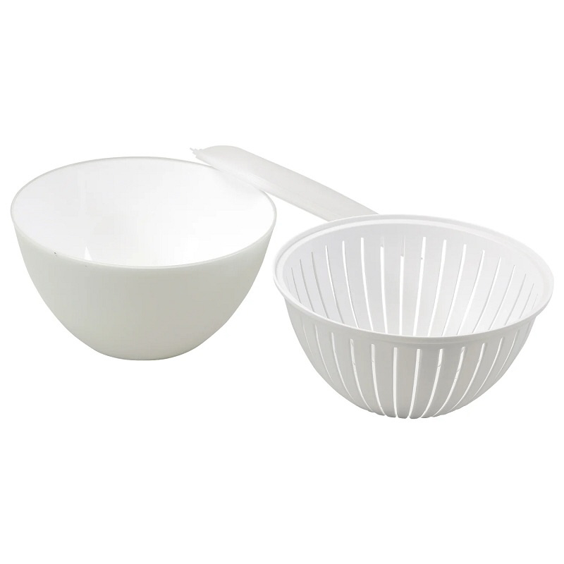 ララシャイン 抗菌耐熱カラーボウル19cm・ザル・フタ3点セット(クリアグリーン) HC-849