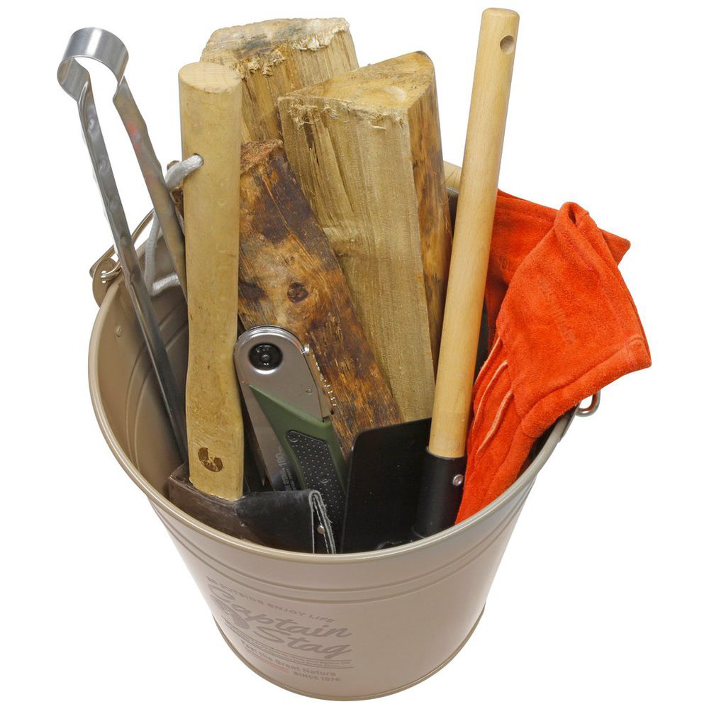 BBQや焚き火のための薪や木炭、鉈やノコギリ、トング・炭バサミ等のツールを整理ができ、まとめて持ち運べる。