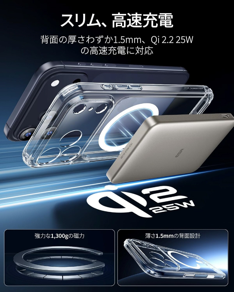 やアクセサリーが瞬時に「ピタッ」と吸着するため、満員電車や急いでいる時でも位置調整の手間が不要です。充電中のずれ落ちやアクセサリーの外れが心配ない設計で、移動中やアウトドアでの利便性が格段に向上します