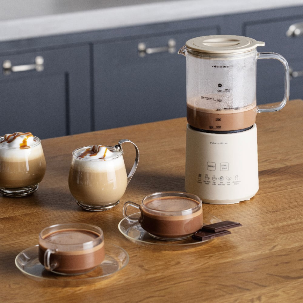 ホットチョコ、ホットミルクフォーム、ホットミルク、ホットミルクティー、ホットティー、コールドミルクフォームの6 つのモードを搭載。モードを選ぶと自動で適切なタイミングで撹拌・温めるため、ひと手間かけないと作れないドリンクも簡単に完成させてくれます。取り外せるガラスポットは、におい移りしにくく、洗いやすいのも魅力です。