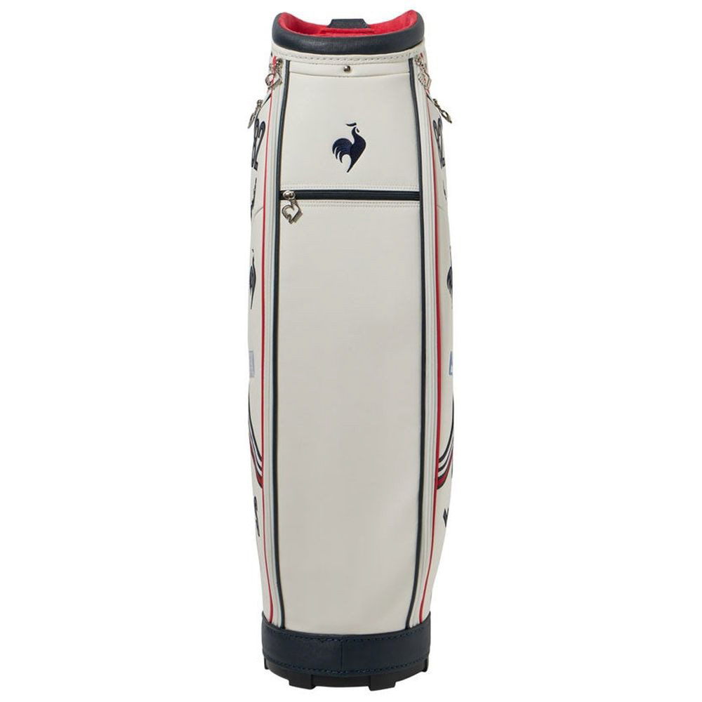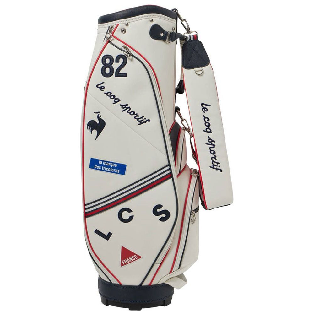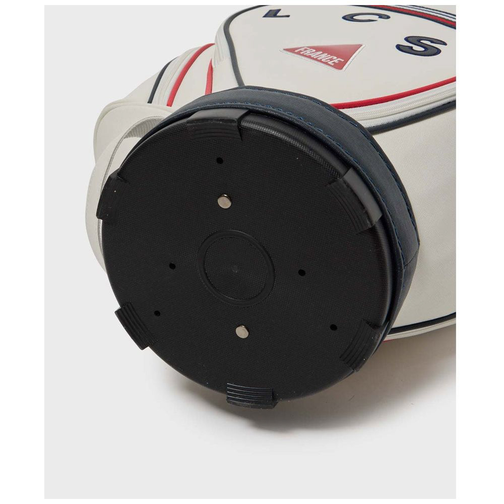 しぼ感のある合皮にアップリケや、ライン、ブランドロゴなどを落とし込んだ高級感のあるキャディバッグです。