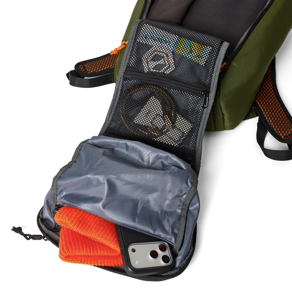 バックパック上部にはジッパー付きの小物入れを搭載し、財布、鍵などの小物を格納することが可能です。