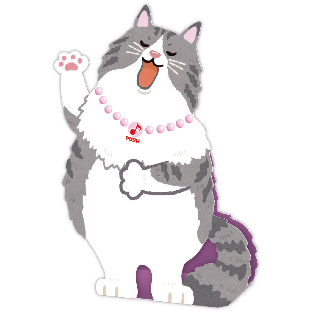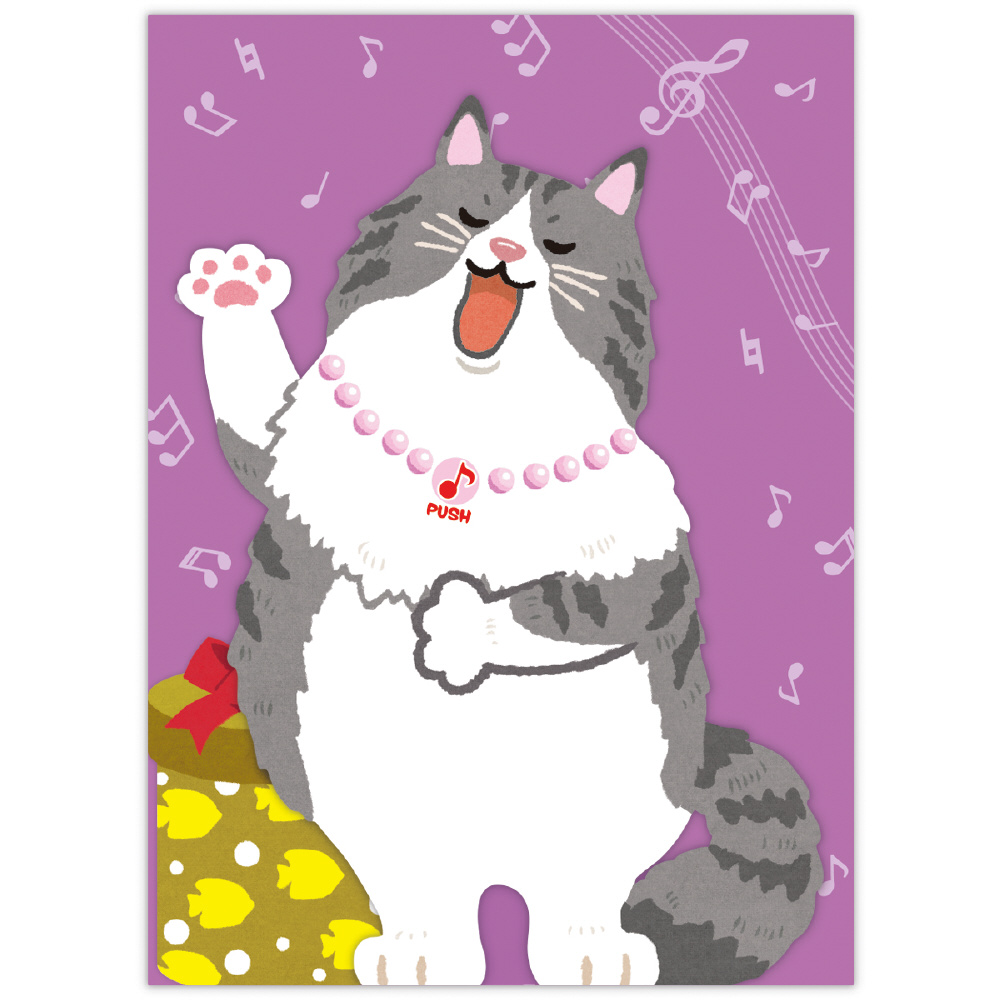 可愛い動物やキャラクターが自慢の歌声で誕生日をお祝いしてくれる「熱唱系アニマルズ」シリーズ。オペラ歌手をイメージしたゴージャスな長毛種の猫が、自慢の美声でバースデーソングを歌い上げます。