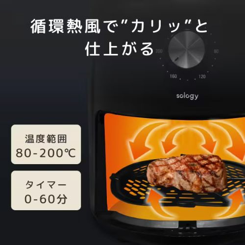 油を使用しなくても揚げたようにカリッと仕上がるsology(ソロジー)のノンフライヤー。
