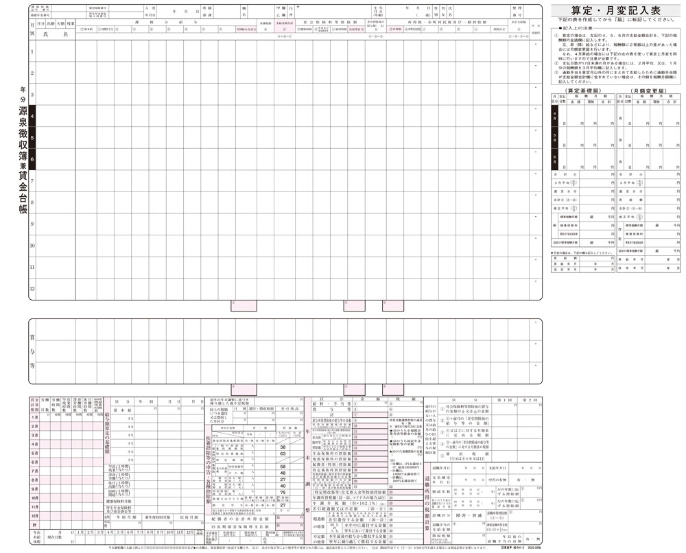 ・源泉徴収簿兼賃金台帳台紙(算定・月変記入表つき)×10枚