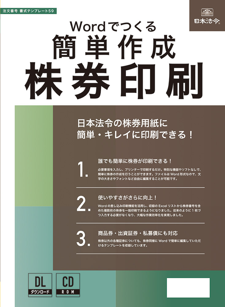 日本法令の株券用紙に簡単・キレイに印刷できる!長年ご愛顧いただいてきた書式テンプレート44「簡単作成 株券印刷」がリニューアル。最新環境に対応し、さらに実務で活用しやすい形に改良されました。