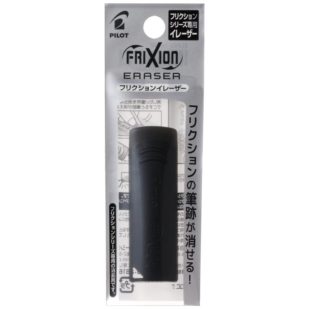 フリクションシリーズ全てに使える、専用イレーザー ブラックはフリクションボールノックゾーン、フリクショシナジーノックをイメージし、大人っぽく落ち着いたカラーにしました。 本体断面が楕円形なので、細かい部分はもちろん、広い面も消すことができます。