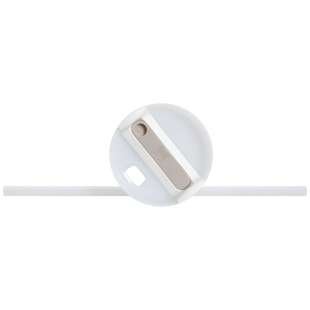 再利用可能なストローを固定しながら飛び散りを防ぐストロー用開口部、飲み口、そして完全にカバーするトップ。