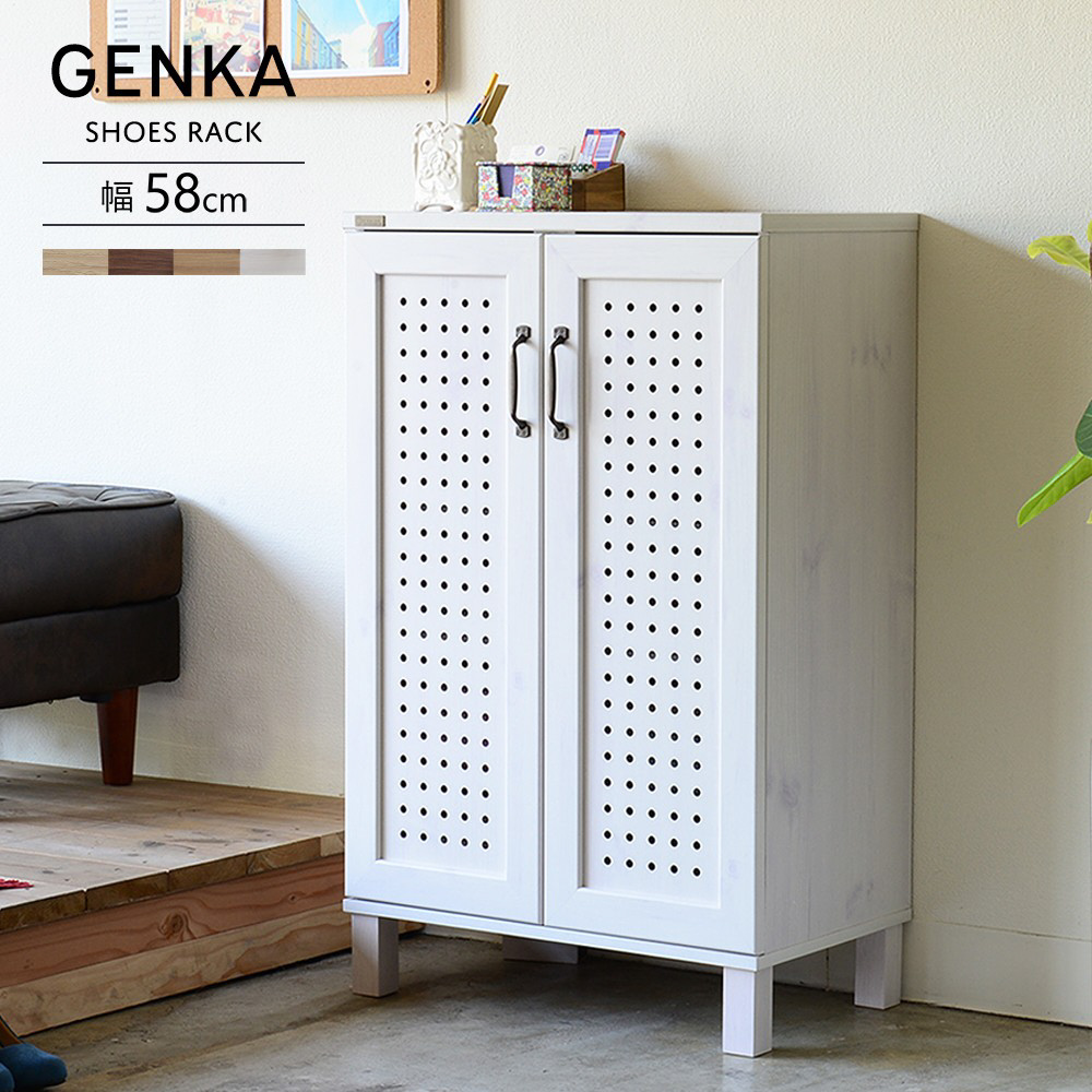 シューズボックス シューズボックス 下駄箱 玄関収納 幅60 木目調 ホワイト 白 ホワイトウォッシュ 北欧 GENKA ジェンカ