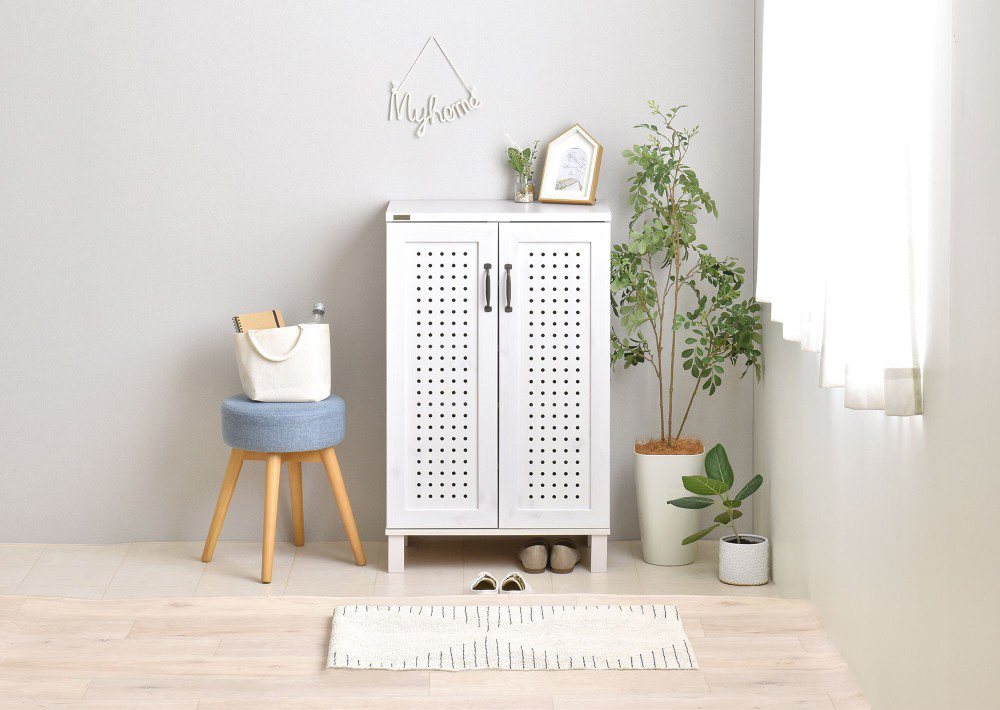 通気性が高くておしゃれ。パンチングが特徴のデザインシューズストッカー。