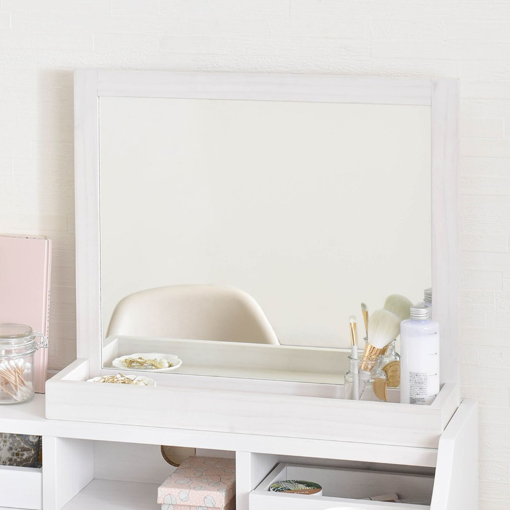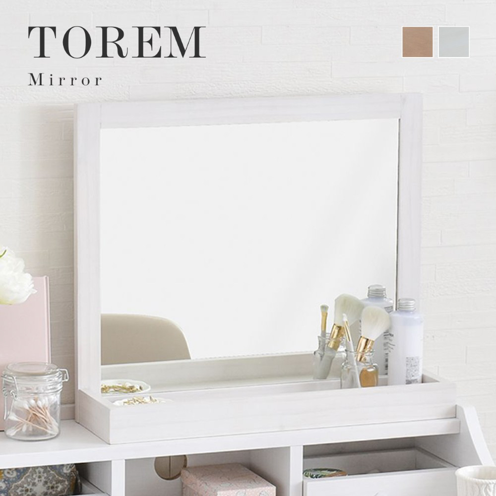 ミラー 鏡 木製 卓上 卓上ミラー 大型 収納 おしゃれ 北欧 ホワイト 白 幅52cm TOREM ホワイト TR55MR-WH