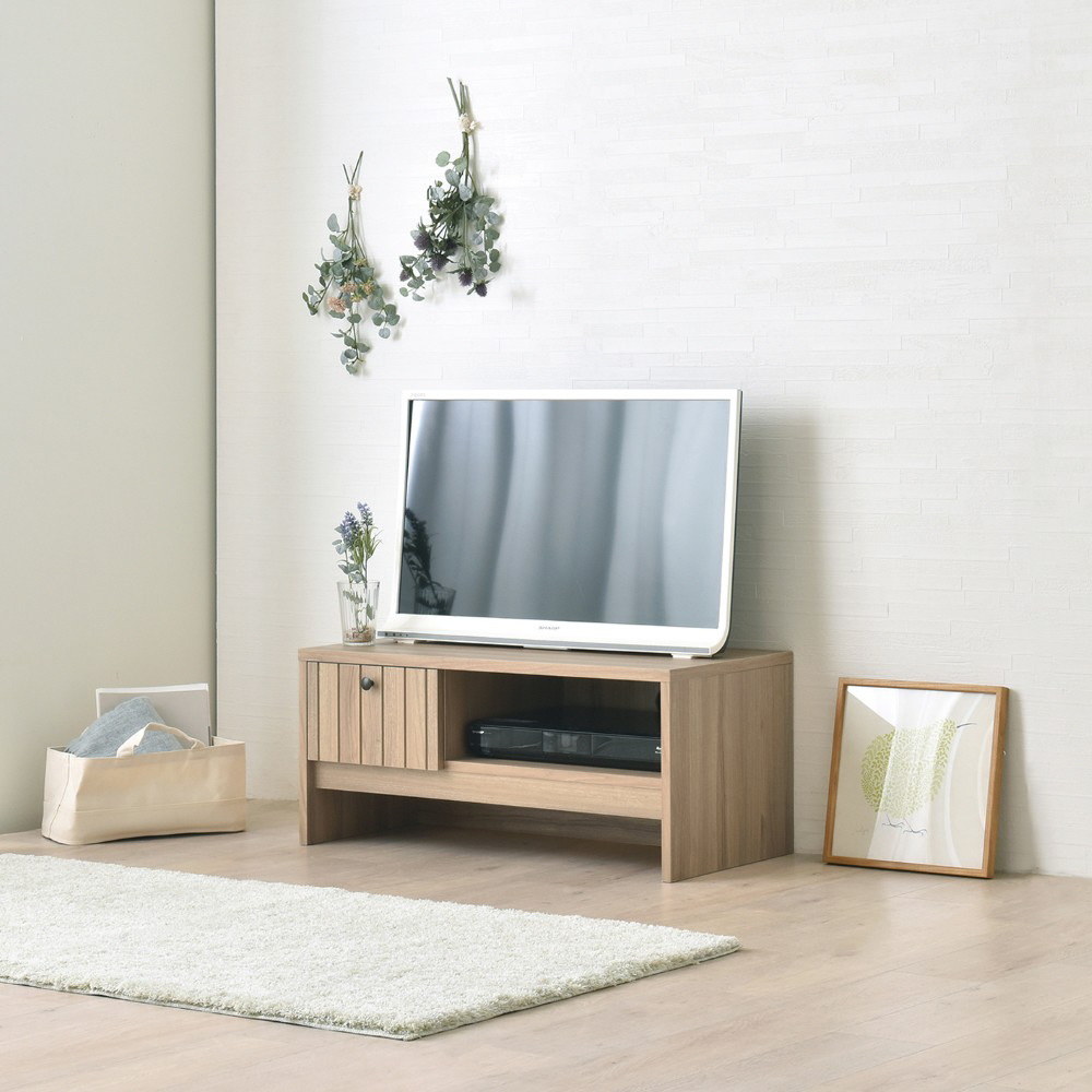 幅約80cmでスペースを取らない、すっきりとスマートなテレビボード。
