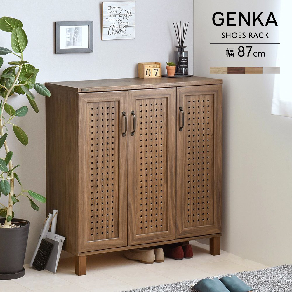 シューズボックス シューズボックス 下駄箱 玄関収納 幅90 木目調 ブラウン ウォールナット 北欧 GENKA ジェンカ