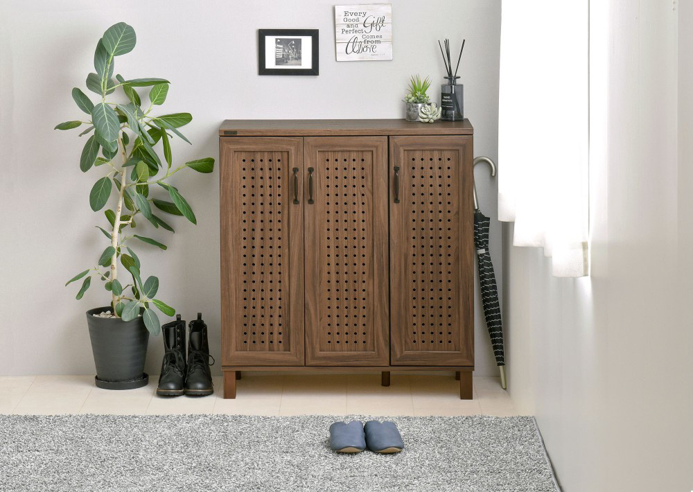 通気性が高くておしゃれ。パンチングが特徴のデザインシューズストッカー。