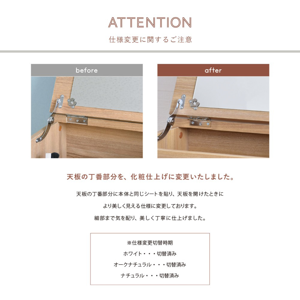 天板を閉じるとデスクに早変わり! 1台で2役をこなしてくれる、優秀なドレッサーです。