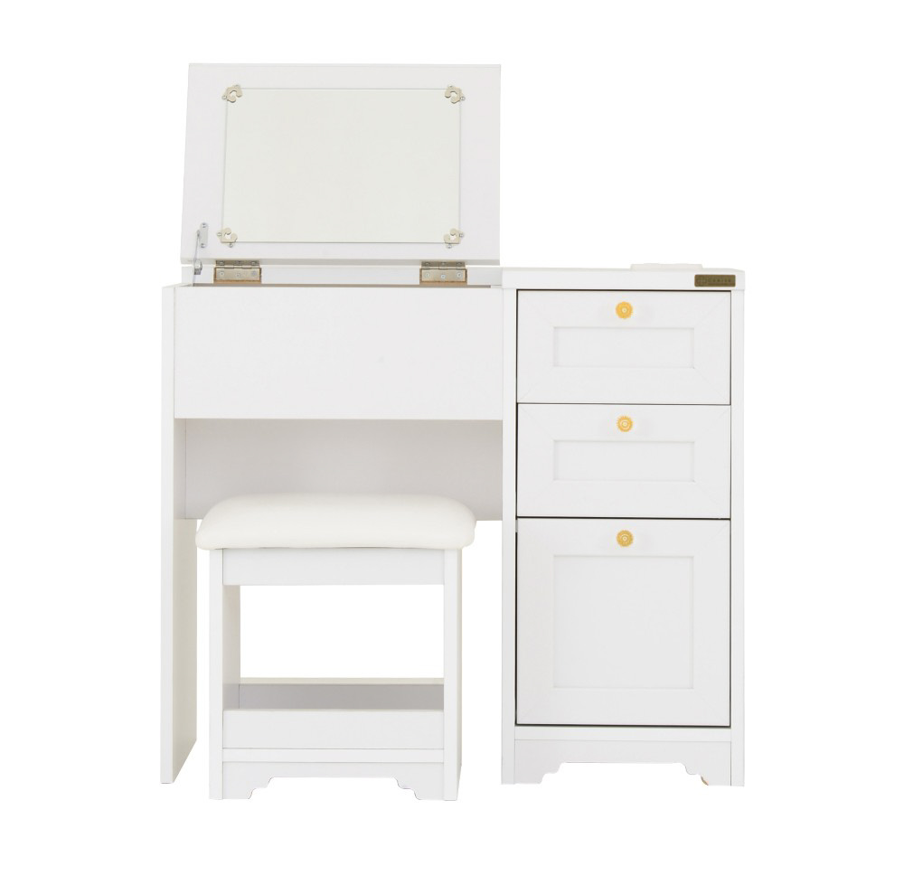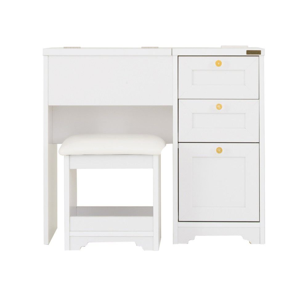 女性らしいデザインが人気のデスクドレッサー。開閉式ミラーの中にコスメなどがたっぷり入り、使いやすさも抜群です♪