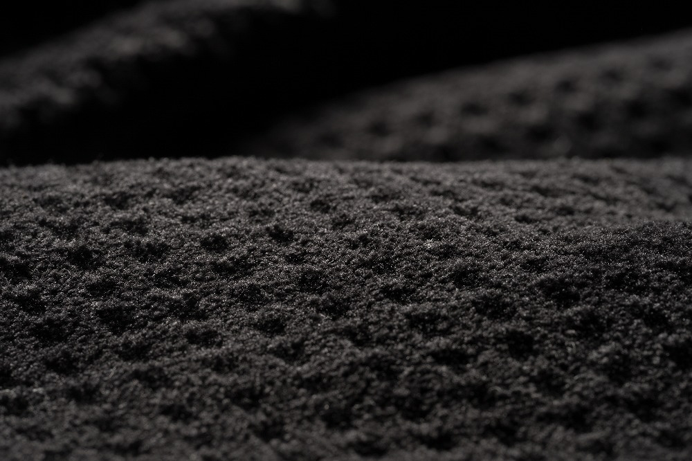 繊維には導電性のあるカーボンファイバーと耐久性があるポリエステルの合成繊維を使用。
