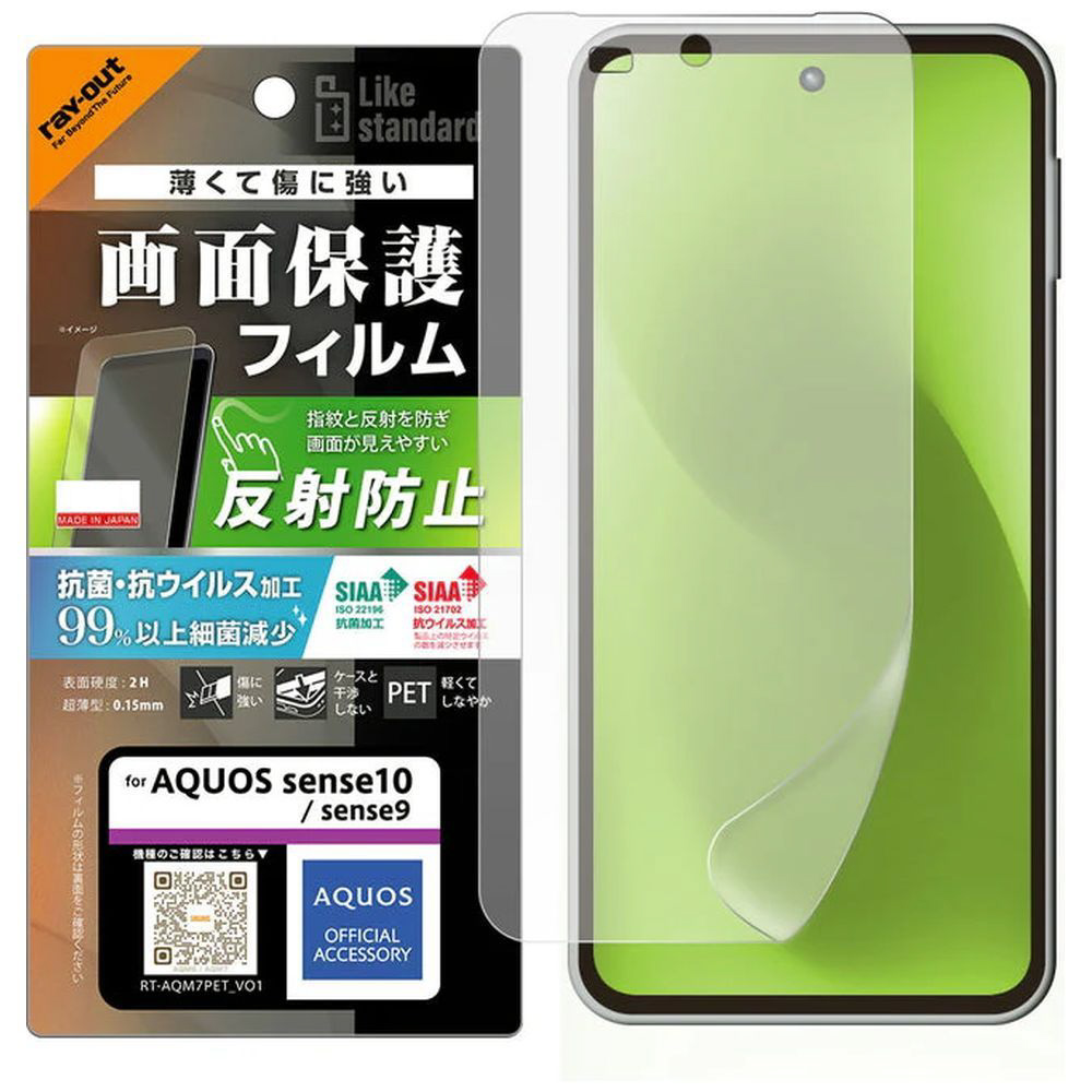 AQUOS sense10 / sense9 / PETフィルム 反射防止 抗菌・抗ウイルス 平面保護 指紋防止