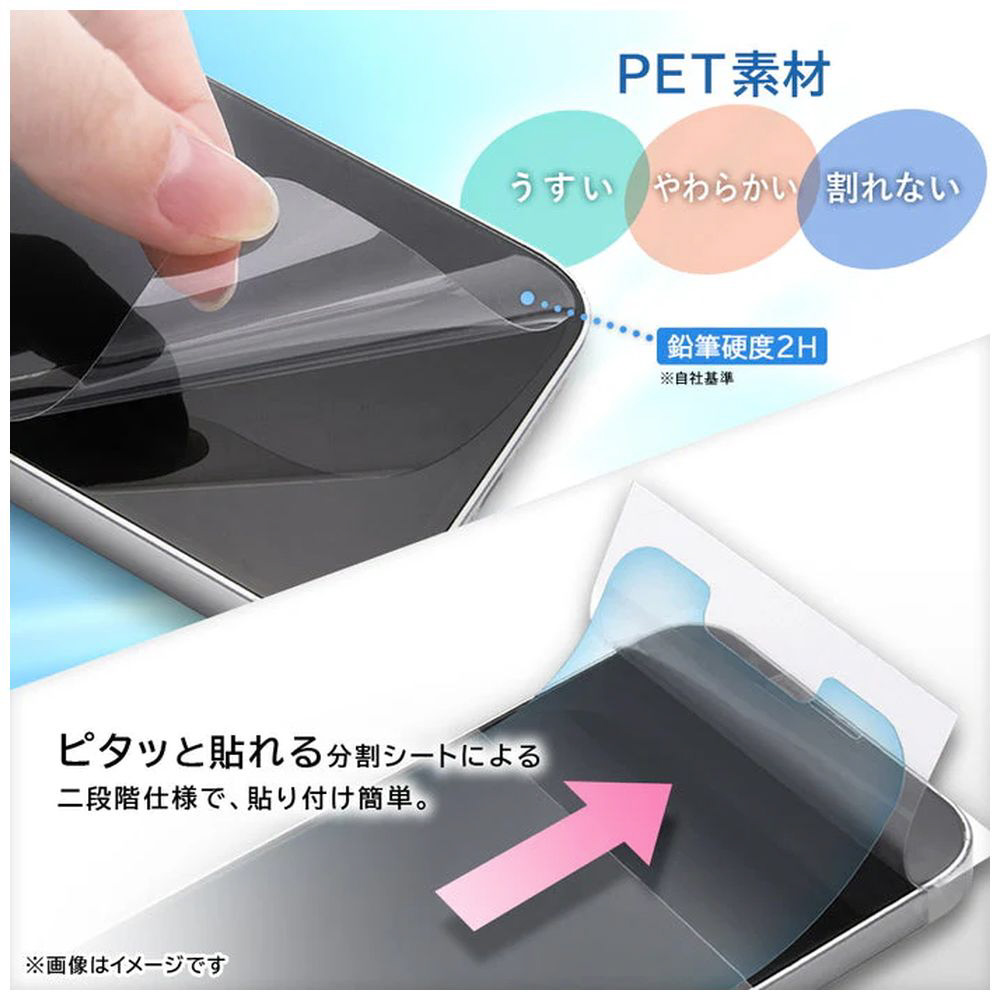 割れにくく、しなやかなPET素材を使用した反射防止フィルム。 上下で順番に貼れるので、位置合わせがしやすく、貼り付けもスムーズです。 さらさらとしたマットな表面で、指紋が目立ちにくく、屋外でも画面が見やすいです。 抗菌・抗ウイルス加工が施されており、清潔さを保ちたい方にもおすすめです。