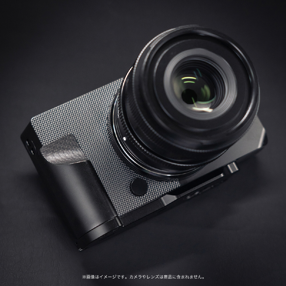 本製品は、SIGMA BF のデザインに調和する専用設計のオールメタルカメラグリップです。ボディ形状に合わせた高精度設計により、装着時の一体感に優れ、ミニマルな外観を損なうことなく自然に馴染みます。グリップ部まで金属素材を採用し、質感と素材感をボディと統一し、確かなホールド性により手ブレを抑え、安定した撮影をサポートします。装着したままバッテリー・メモリーカードの交換が可能です。底面にはアルカスイス互換規格を採用し、対応雲台へスムーズに装着可能しています。ストラップホールも備え、縦位置・横位置を問わず柔軟に使用できます。